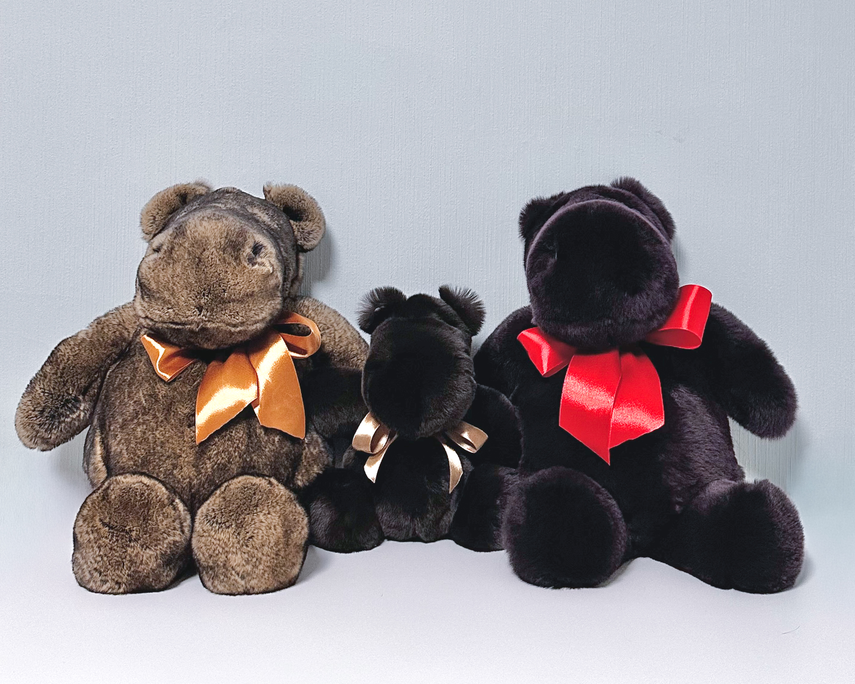 Бегемот Гиппо гигантский сделан из натурального меха кролик рекс роскошного цвета "темный шоколад". Под нежным мехом скрываются милые детали - ноздри и пупочек из замши. Бегемот украшен декоративным атласным бантом, который при желании можно снять. Это одна из самых больших игрушек в нашем ассортименте. Идеальный размер для теплых обнимашек!