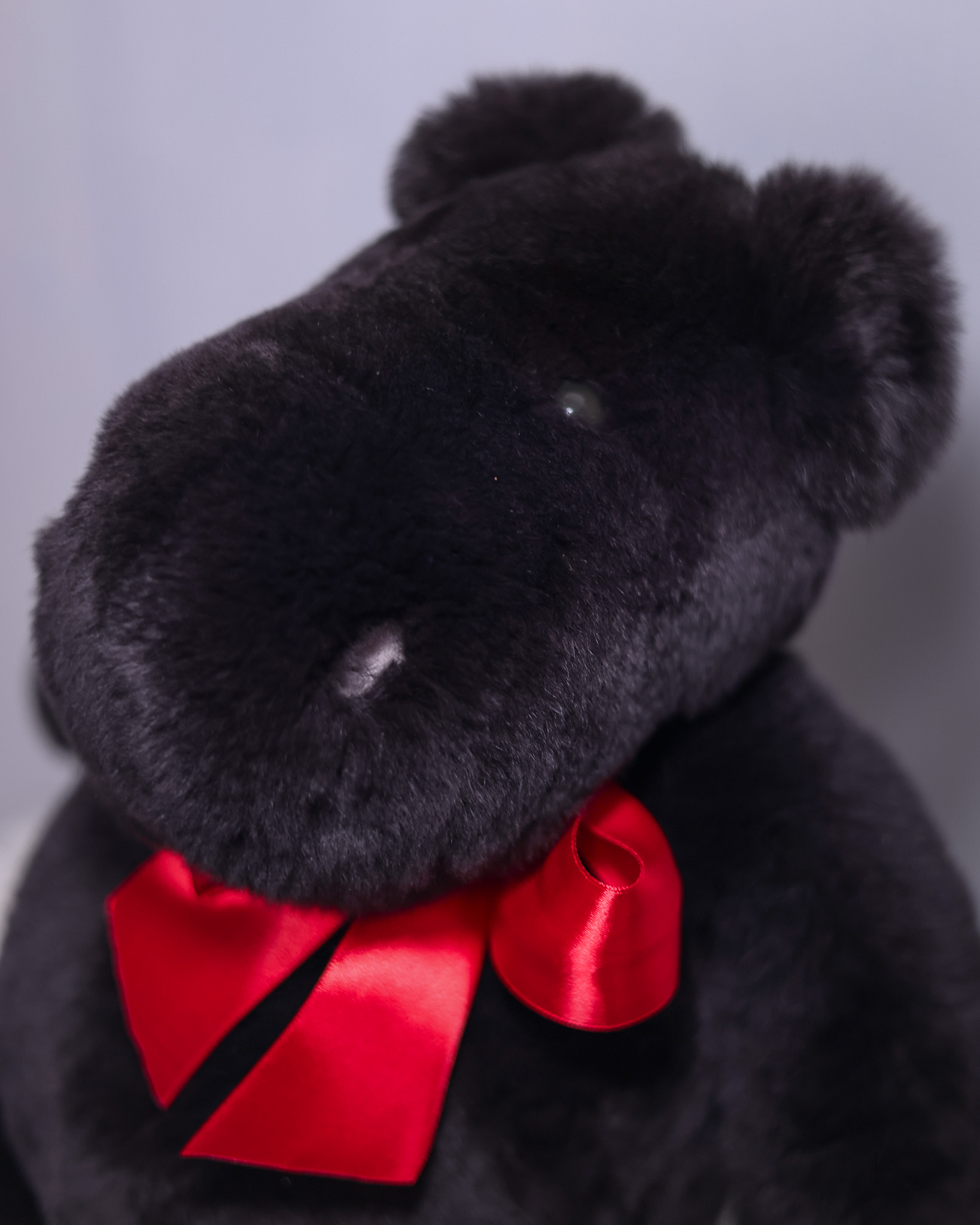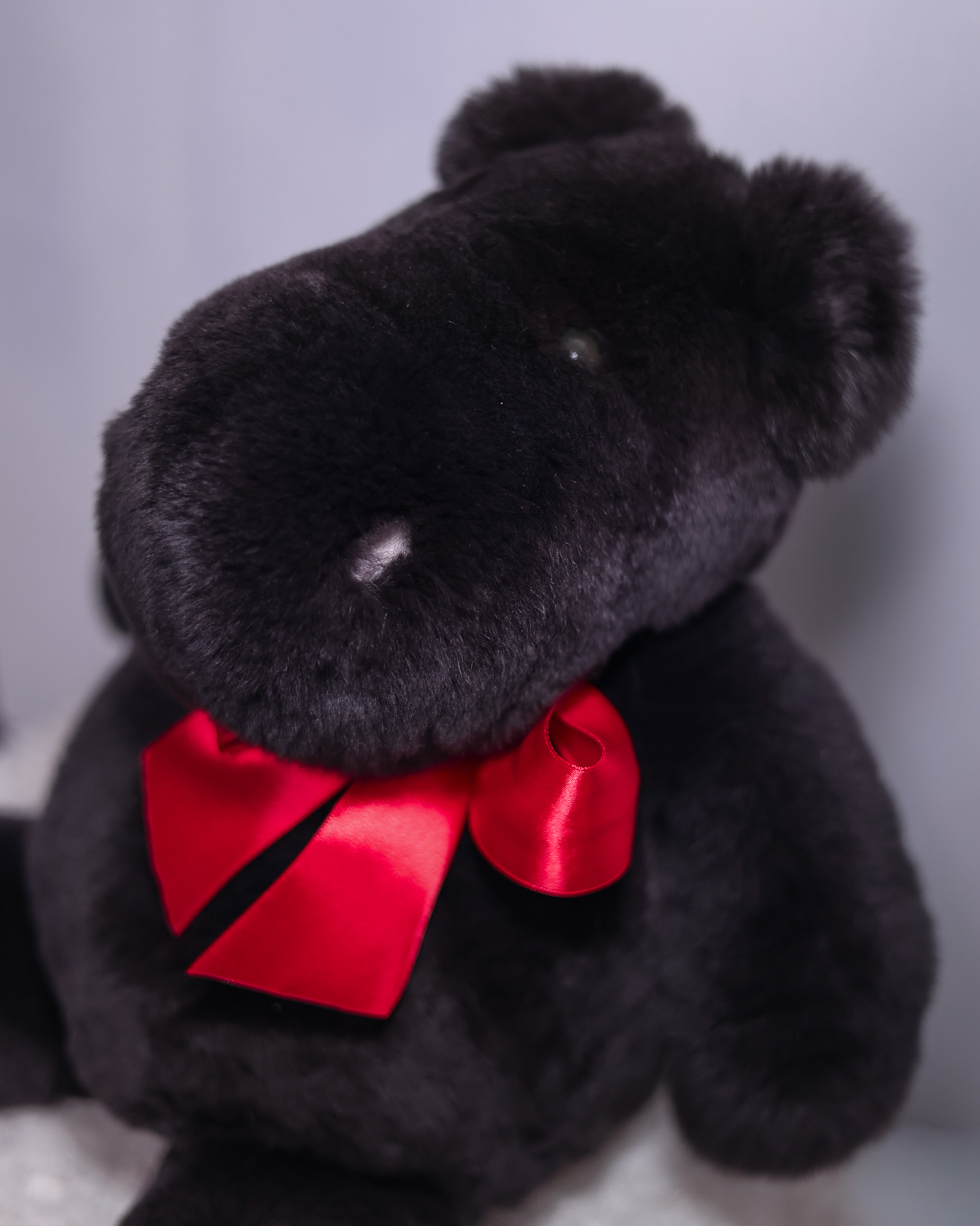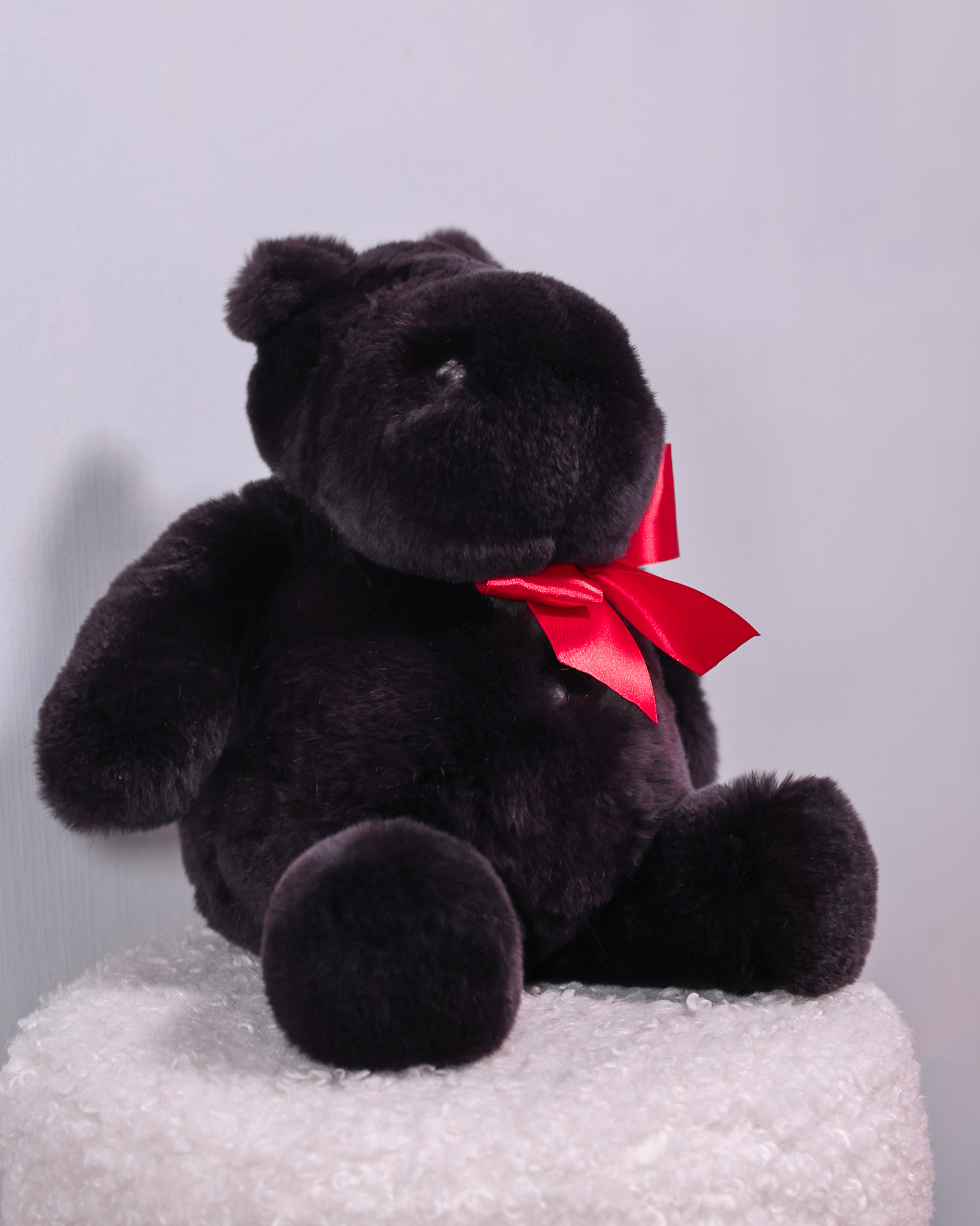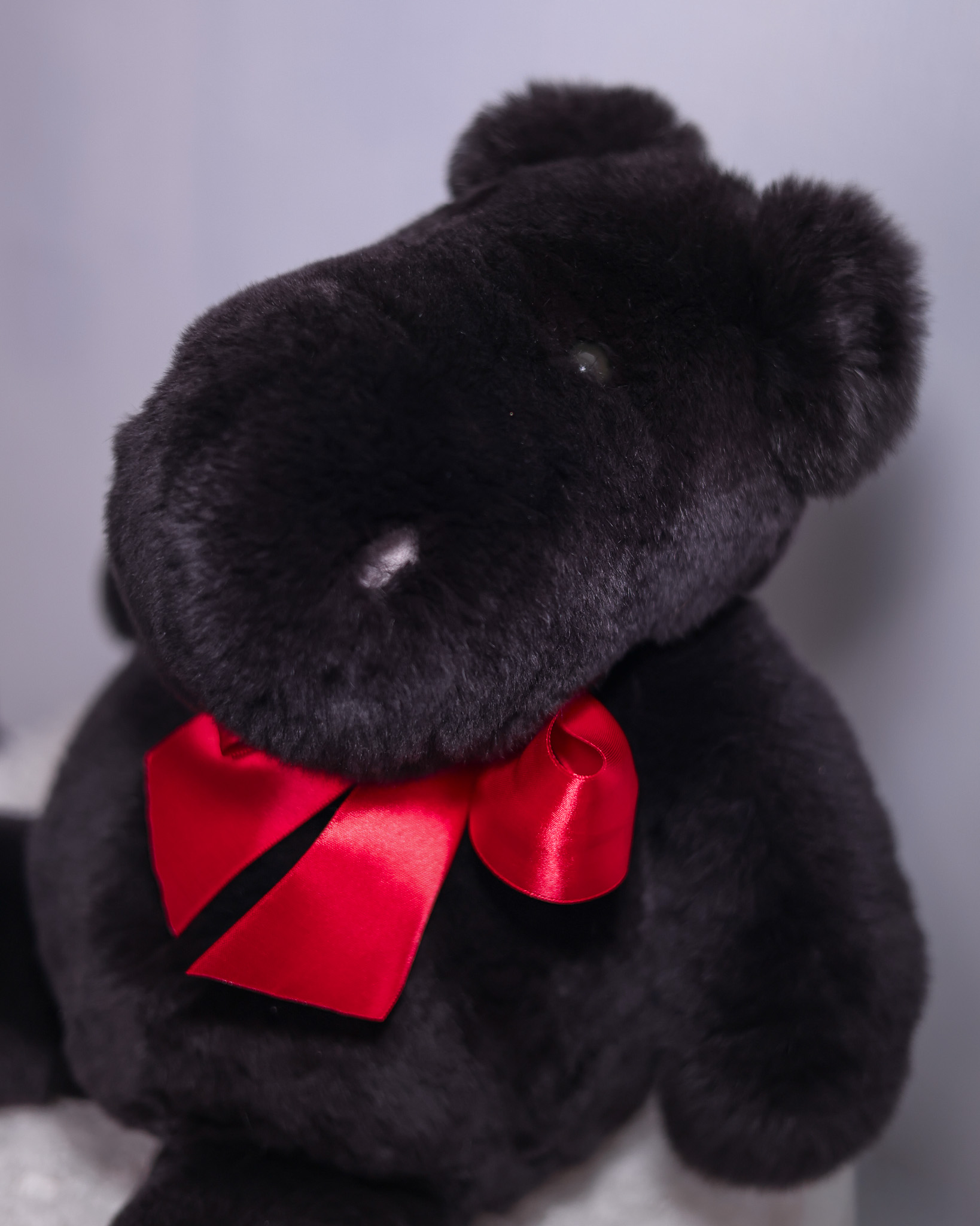 Под нежным мехом скрываются милые детали — ноздри и пупочек из нежной розовой замши. Бегемот украшен декоративным атласным бантом, который при желании можно снять. Это одна из самых больших игрушек в нашем ассортименте:
