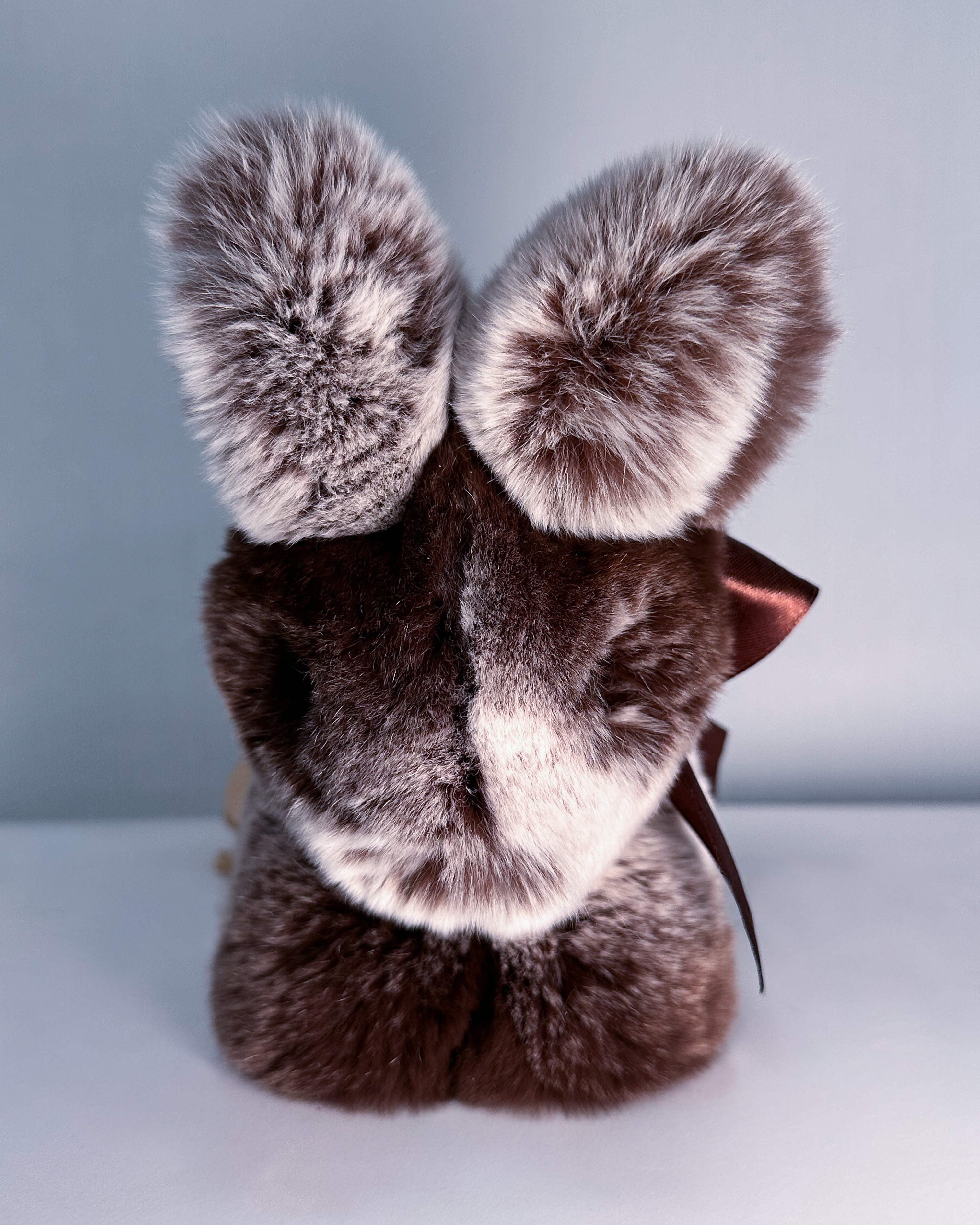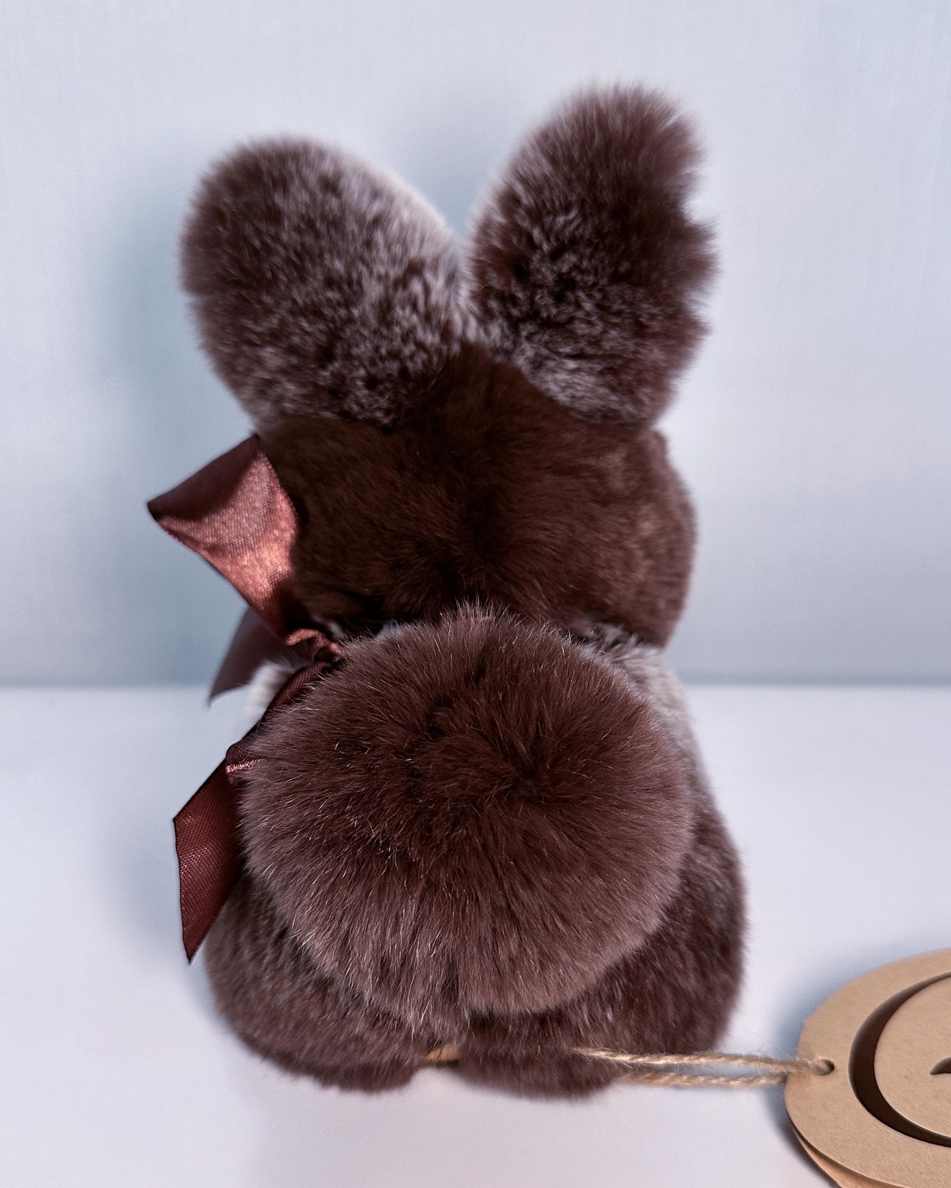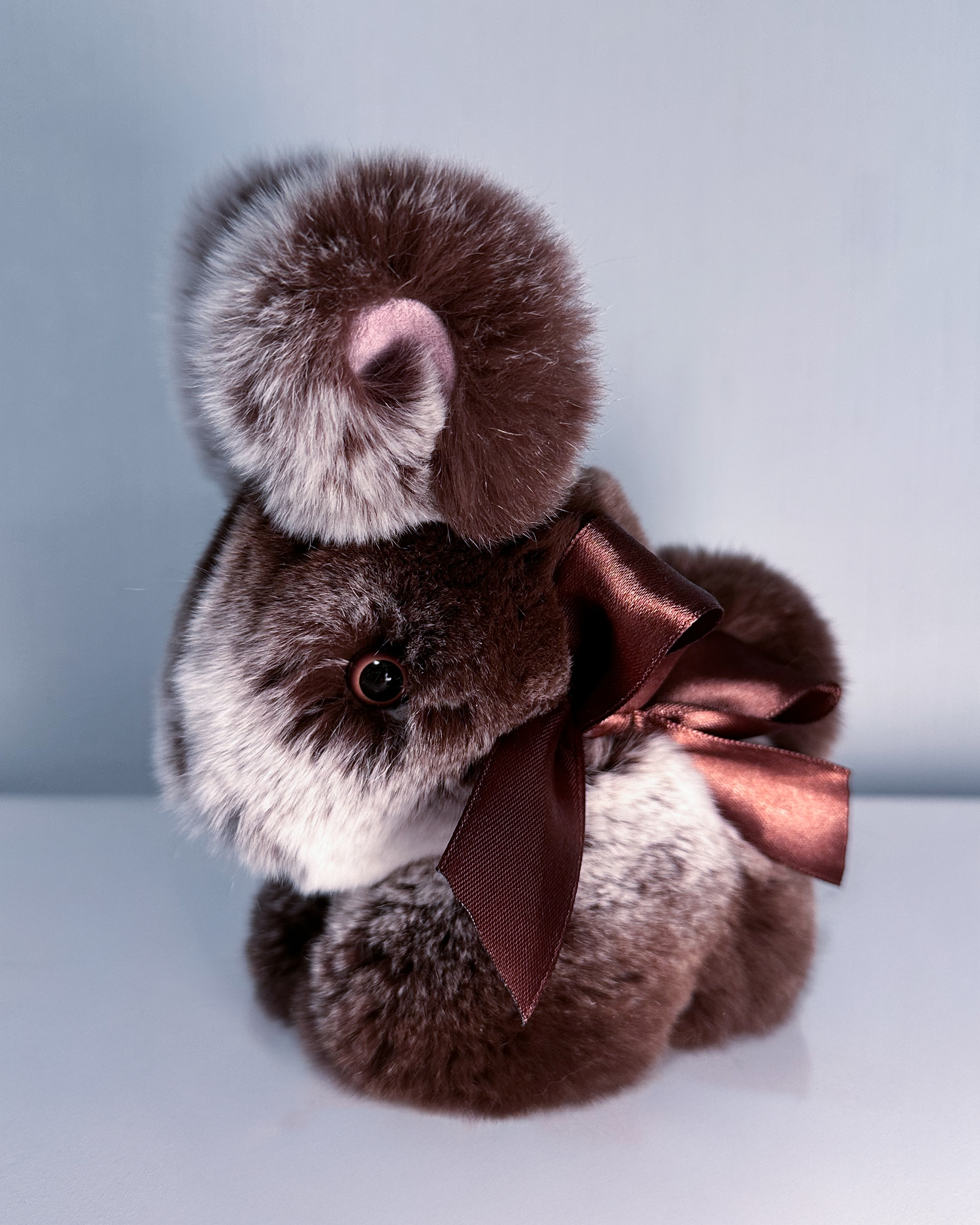 Кролик Тоша сделан из натурального меха кролика породы рекс уникального красивейшего "кокосового" окраса и розовой замши (вставки в ушках). Украшен декоративным атласным бантом, который при желании можно снять.