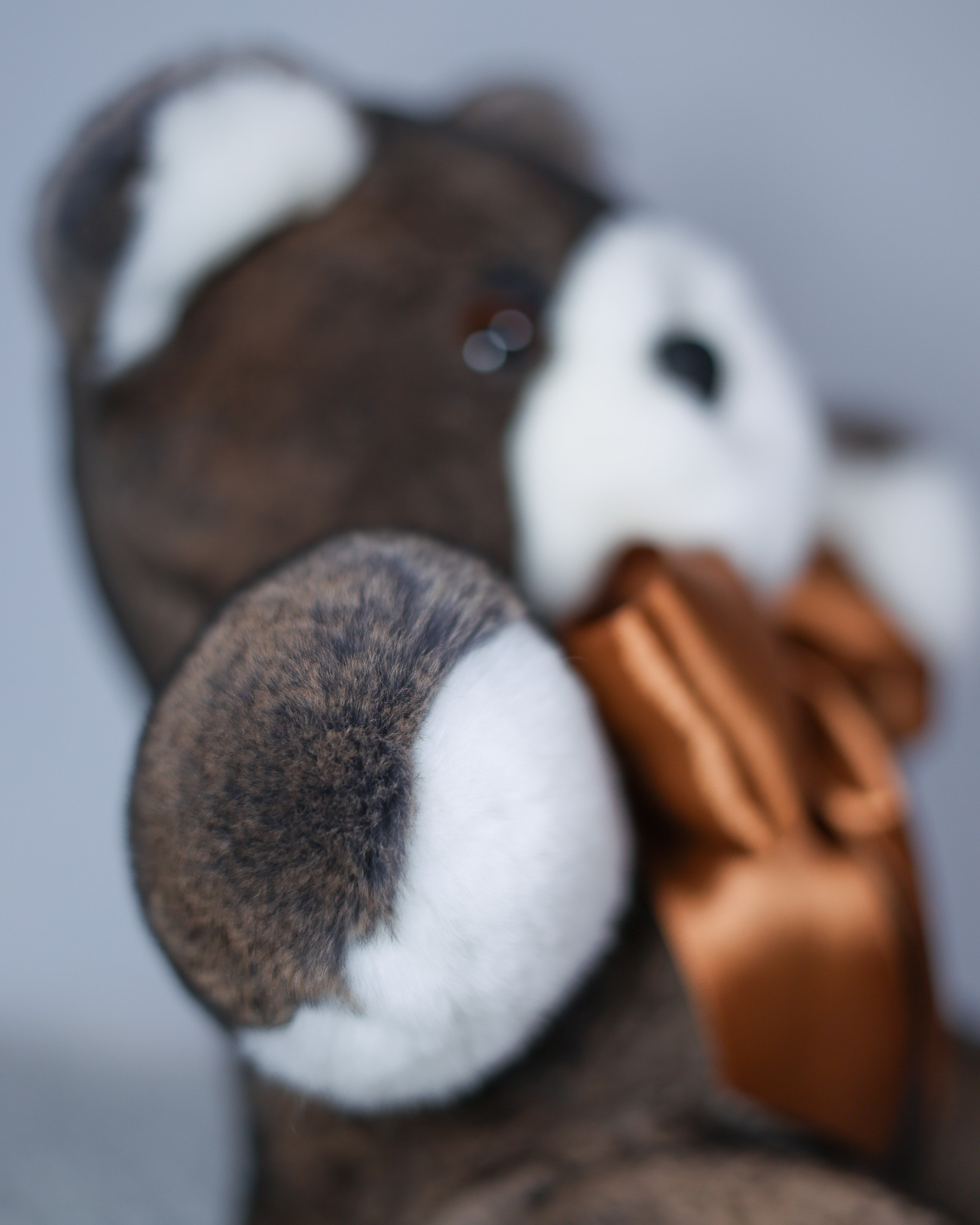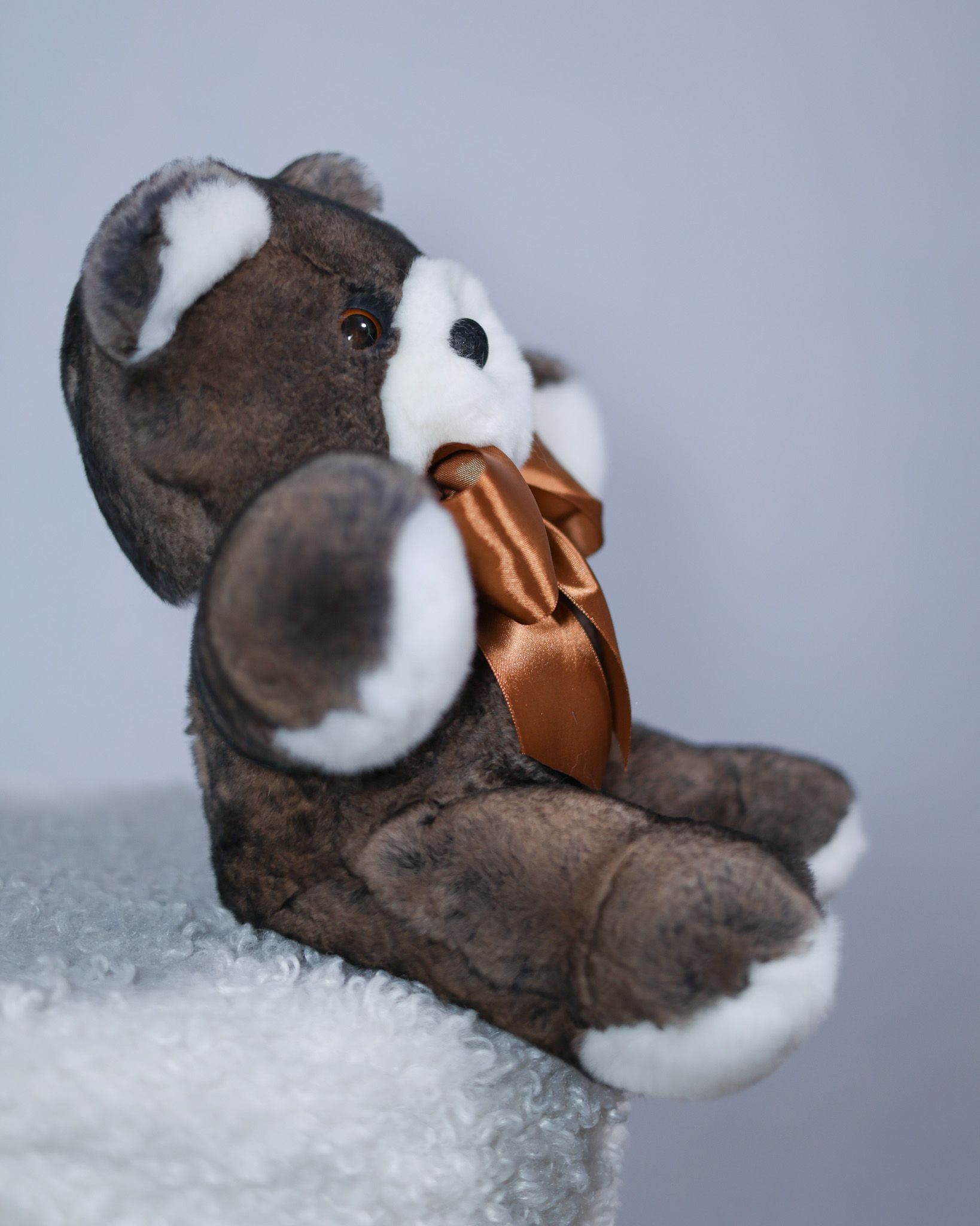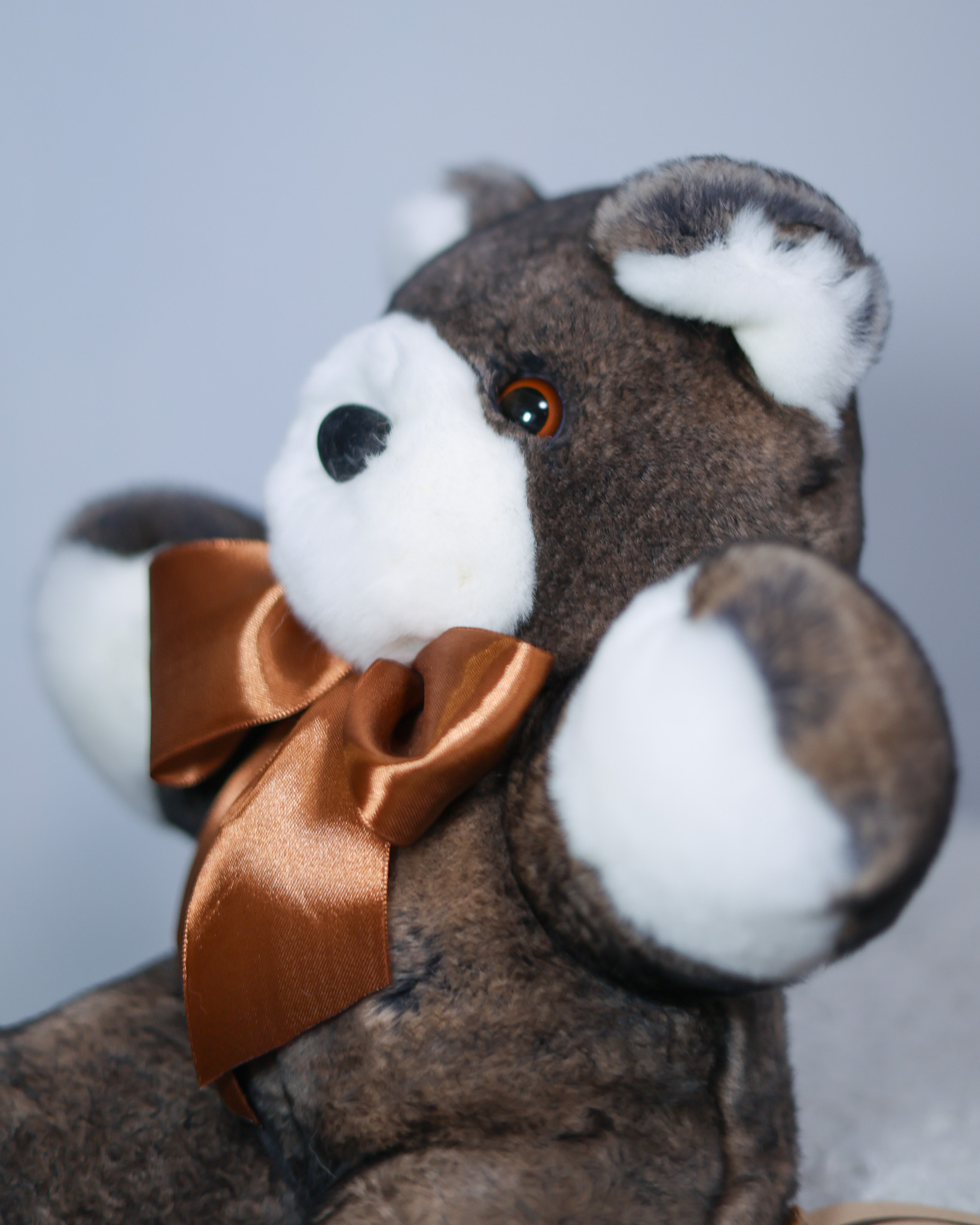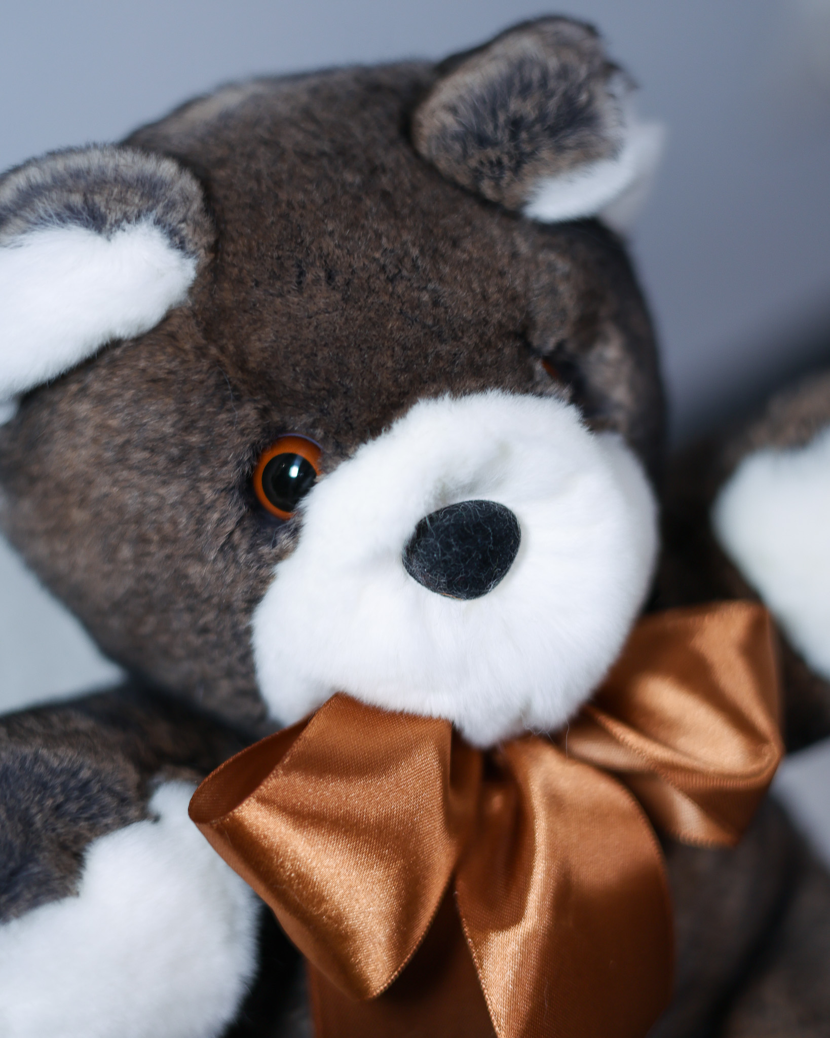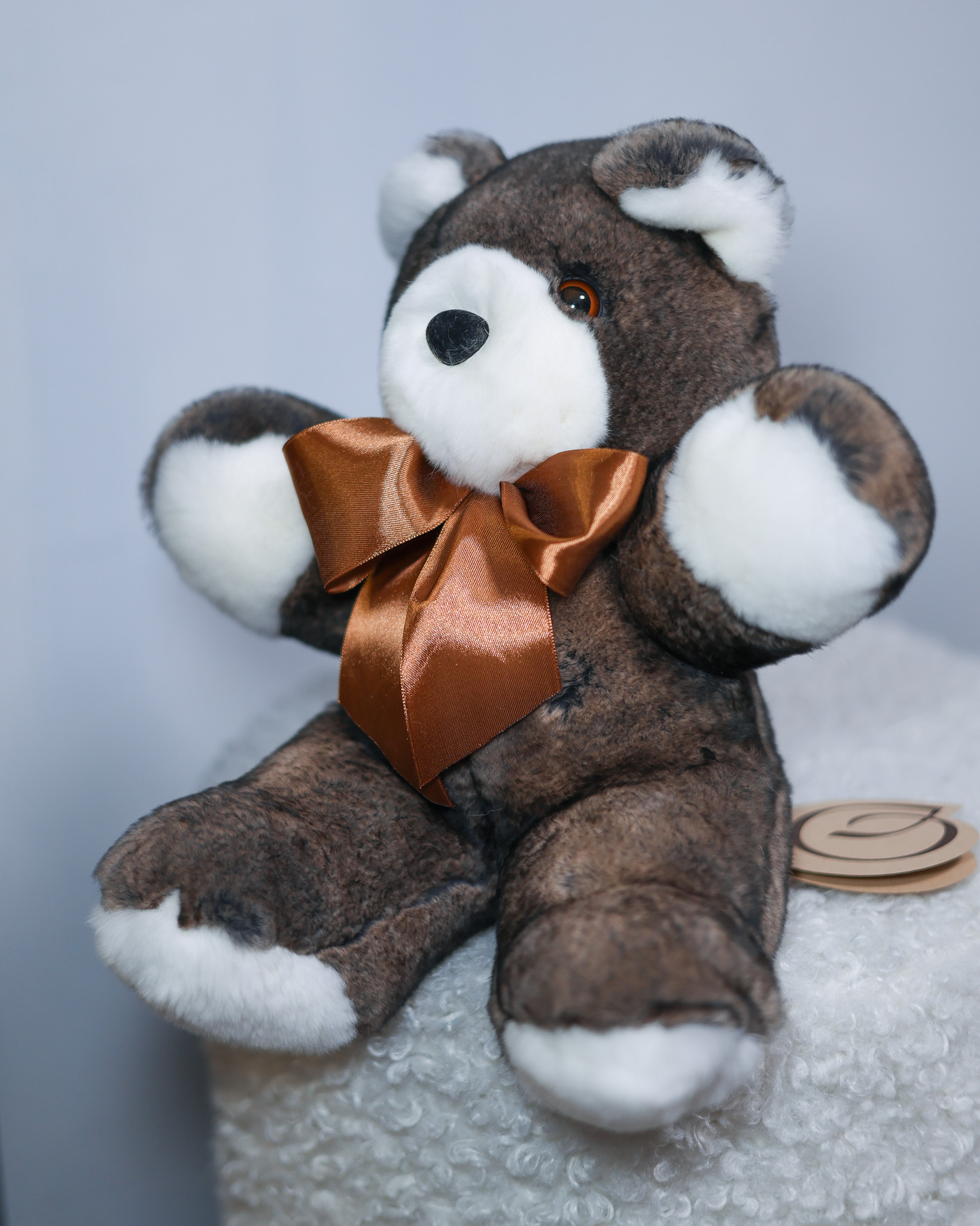 Медведь Мишутка сделан из натурального меха кролик рекс коричневого цвета с вставками из белого меха на мордочке, лапках и в ушках. Мишутка украшен декоративным атласным бантом, который при желании можно снять.