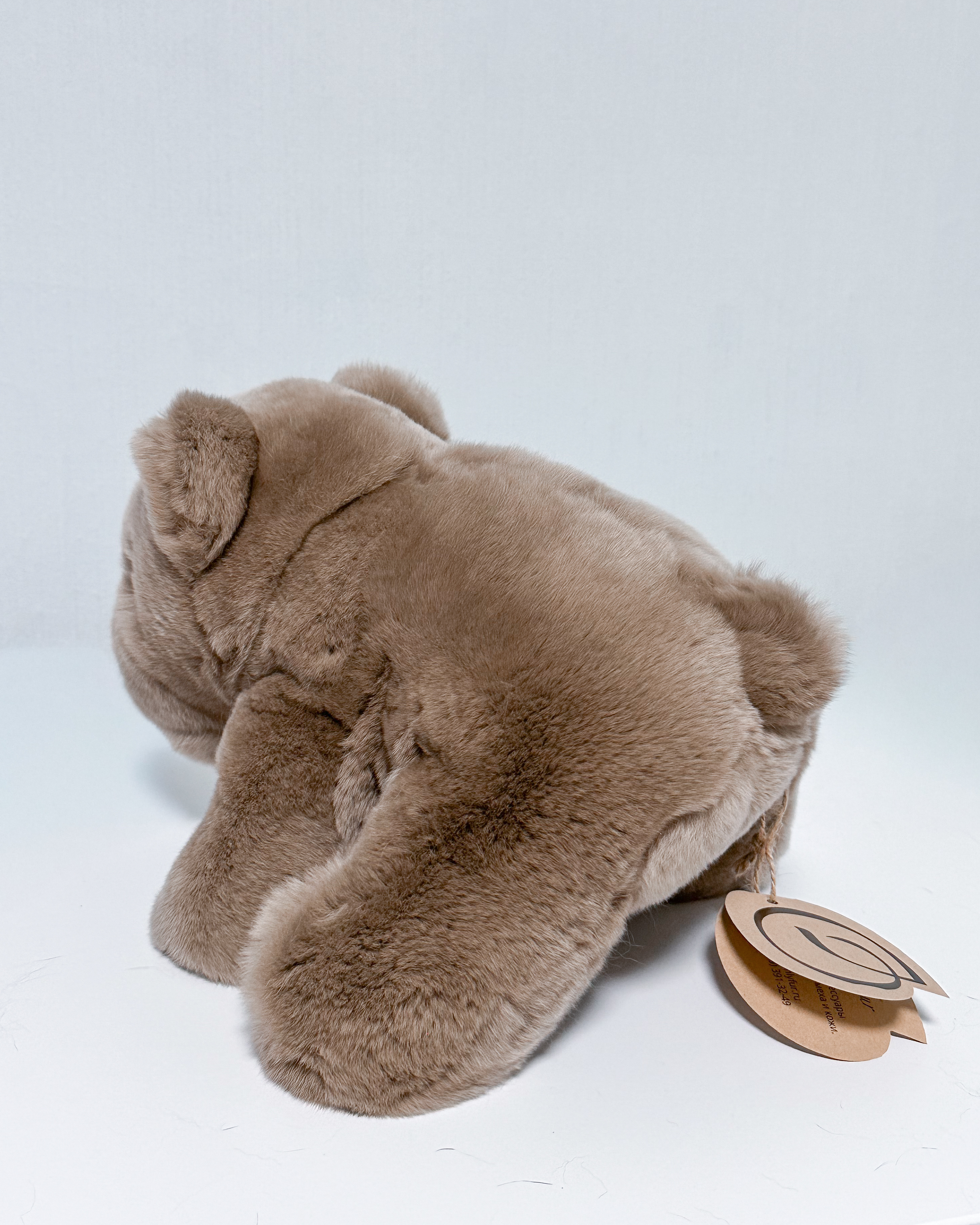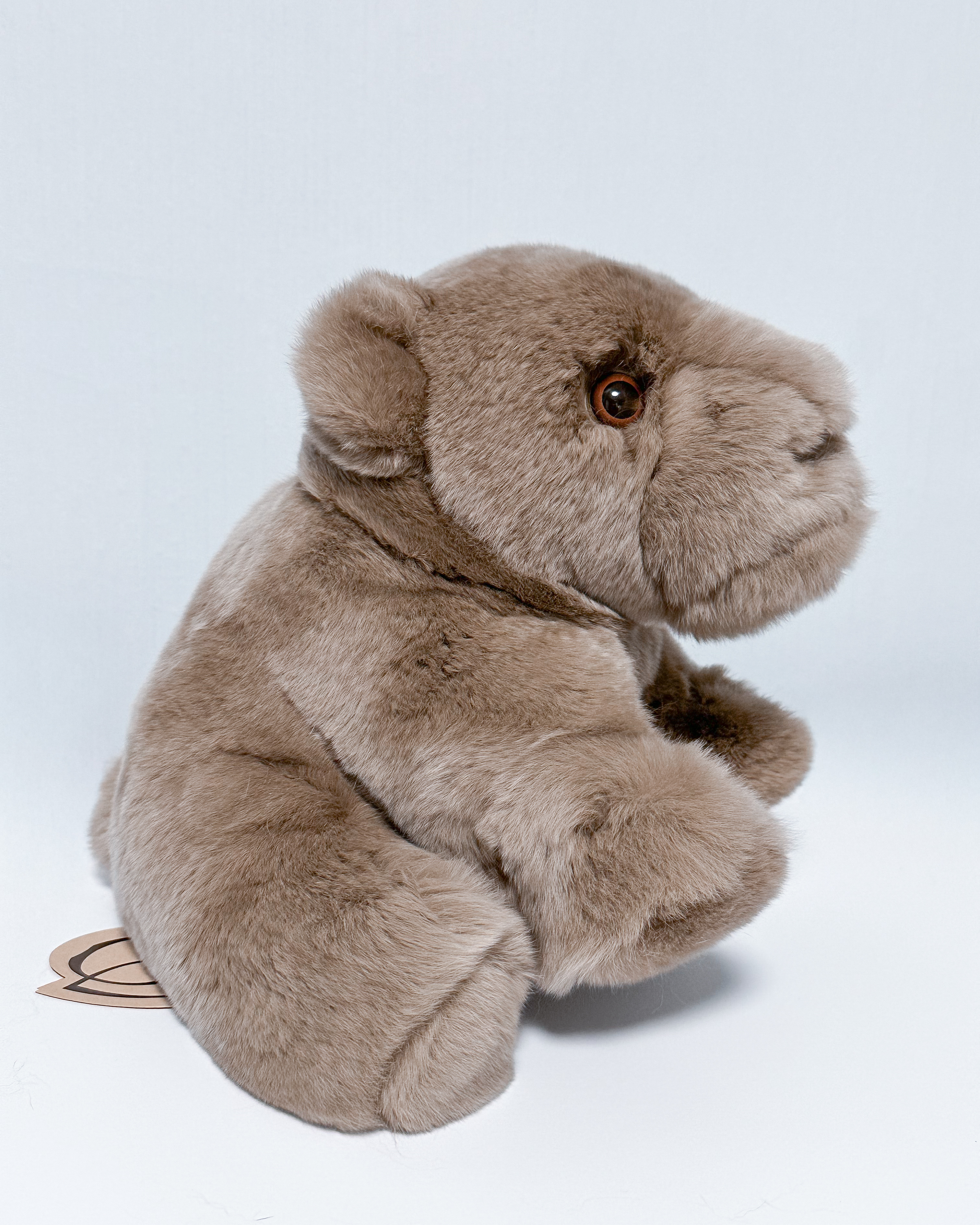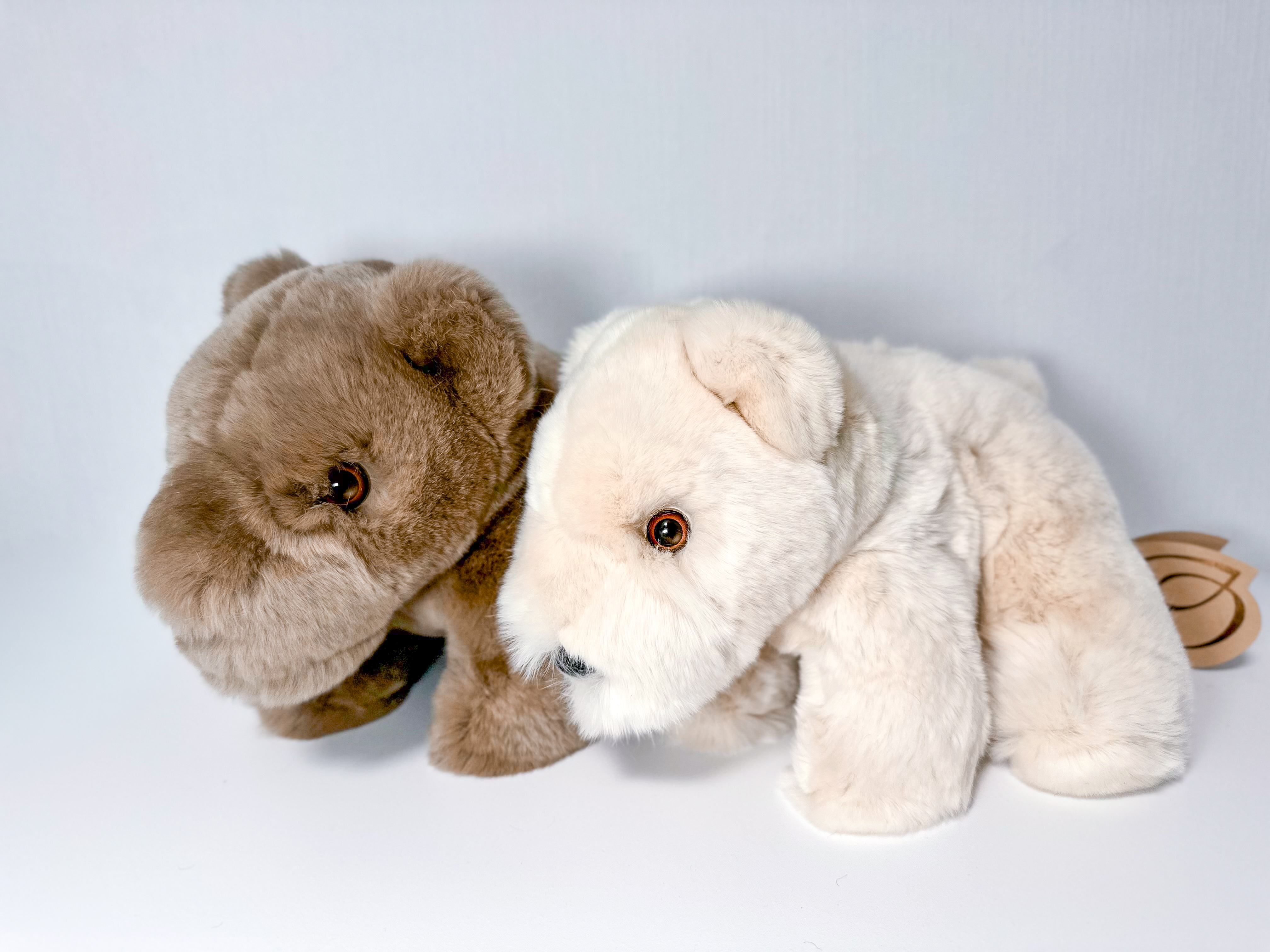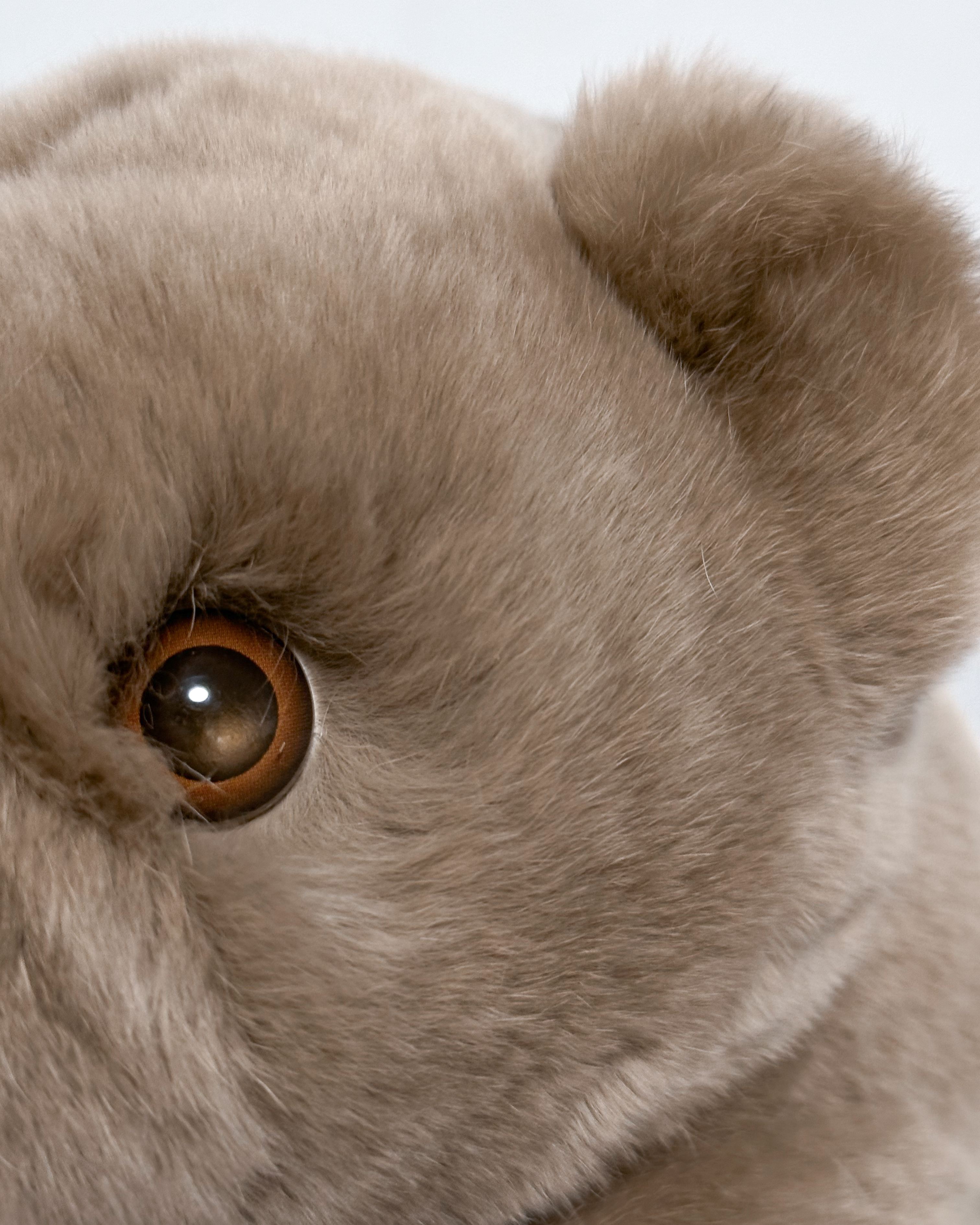 Медведь Умка сделан из натурального меха кролик рекс бежевого цвета. Это милый медвежонок, прообразом которого стал робкий и любознательный персонаж из одноименного советского мультфильма. Мишка зафиксирован в полусидячем положении.