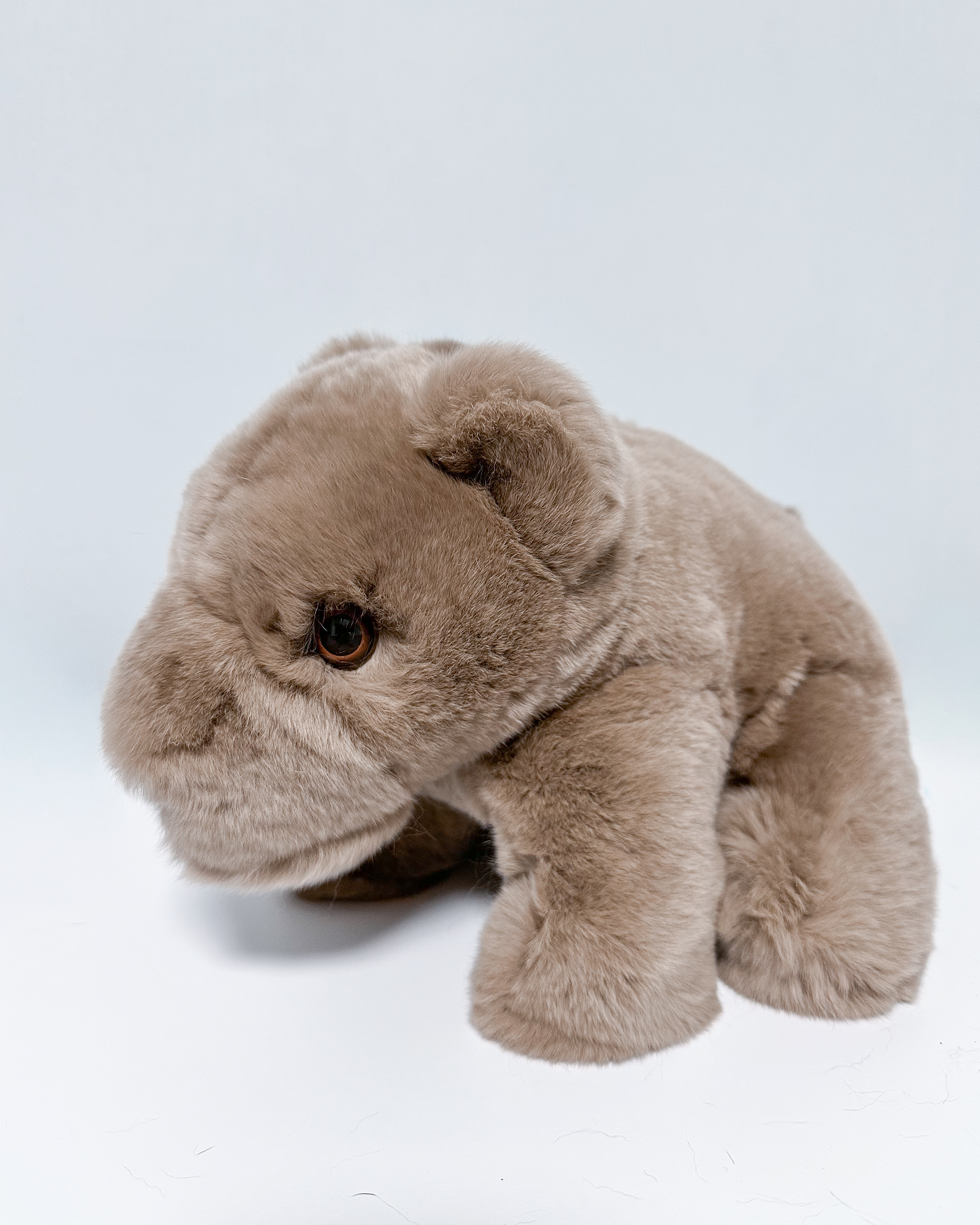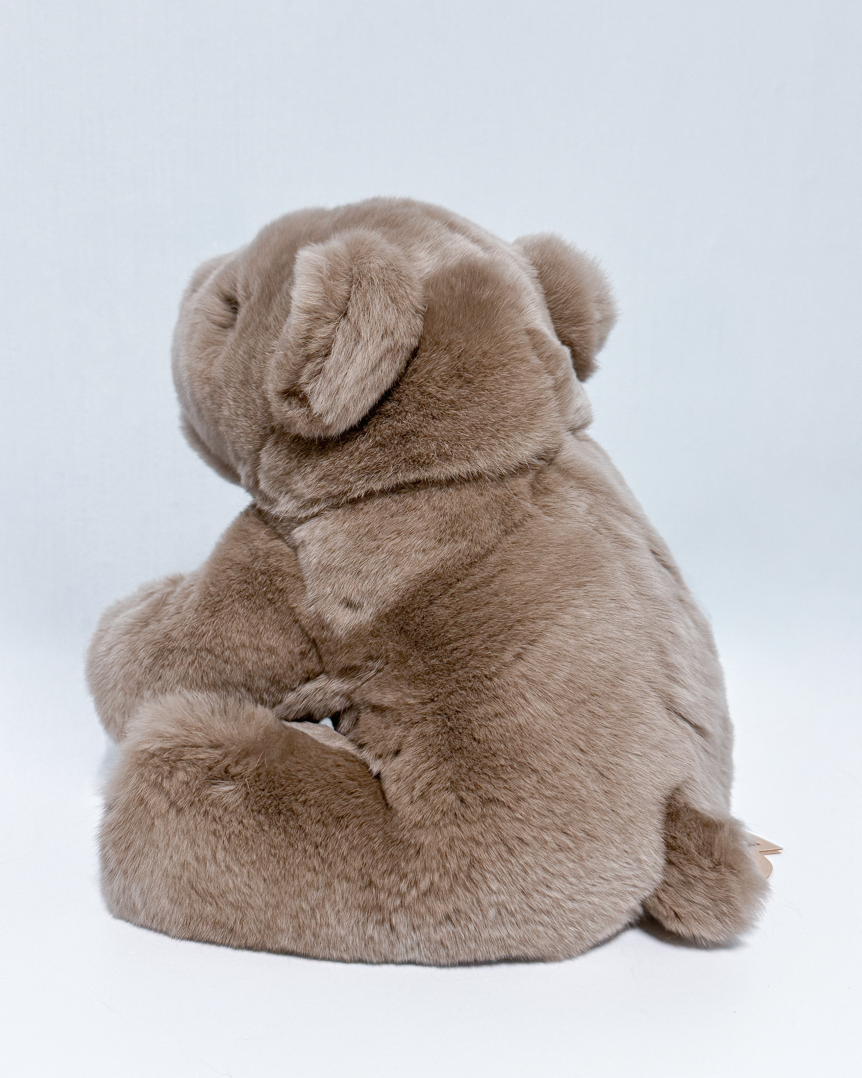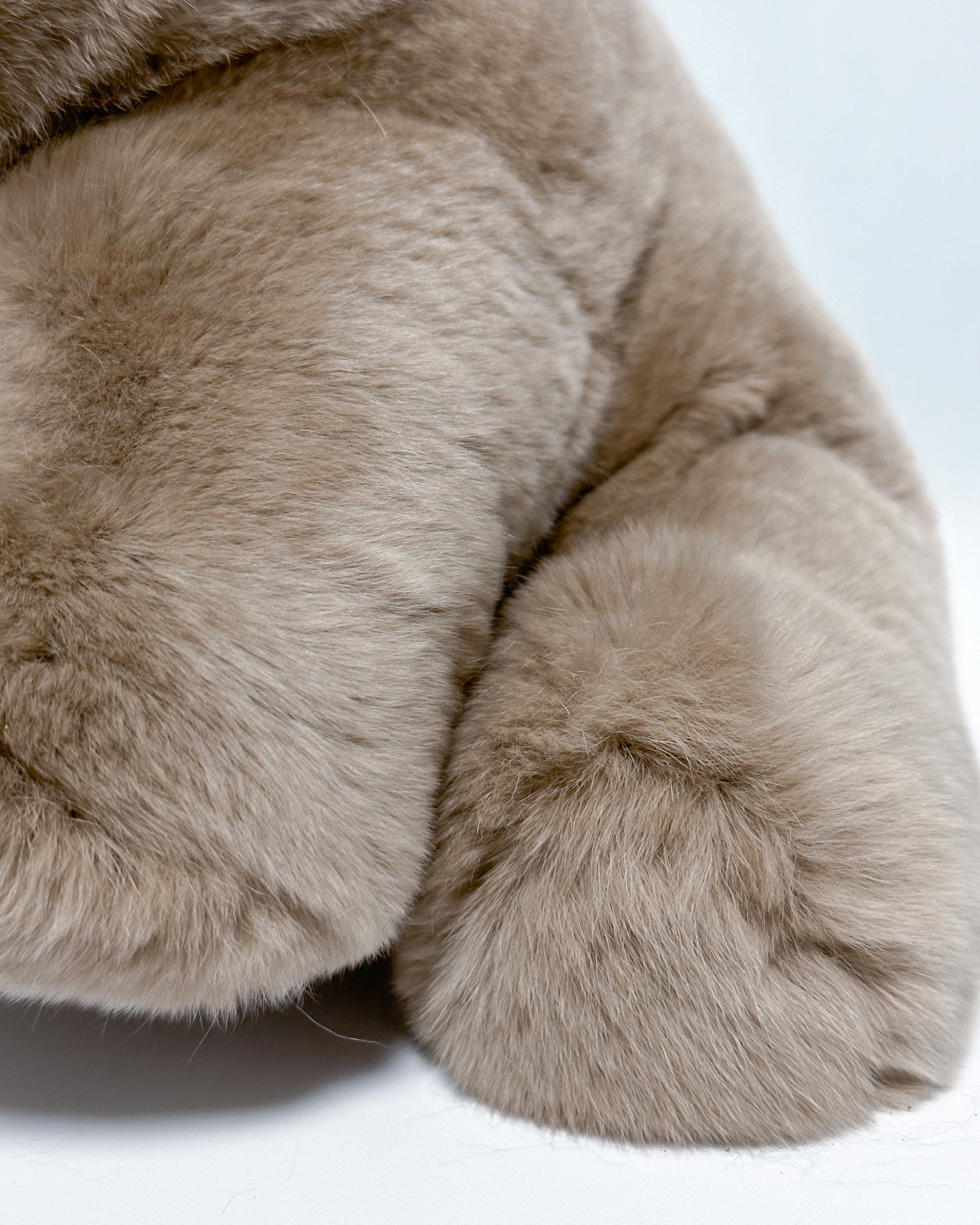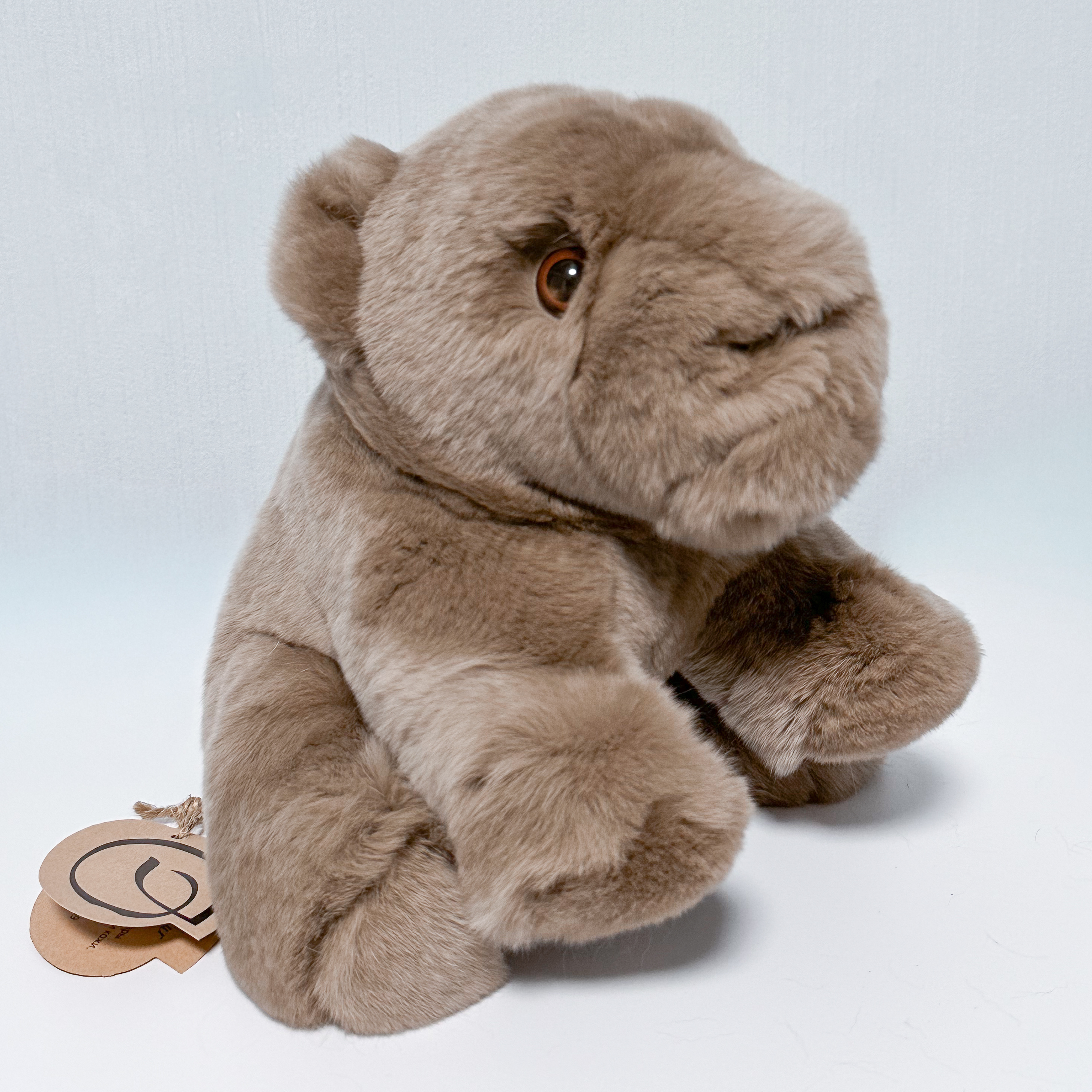 Медведь Умка сделан из натурального меха кролик рекс бежевого цвета. Это милый медвежонок, прообразом которого стал робкий и любознательный персонаж из одноименного советского мультфильма. Мишка зафиксирован в полусидячем положении.