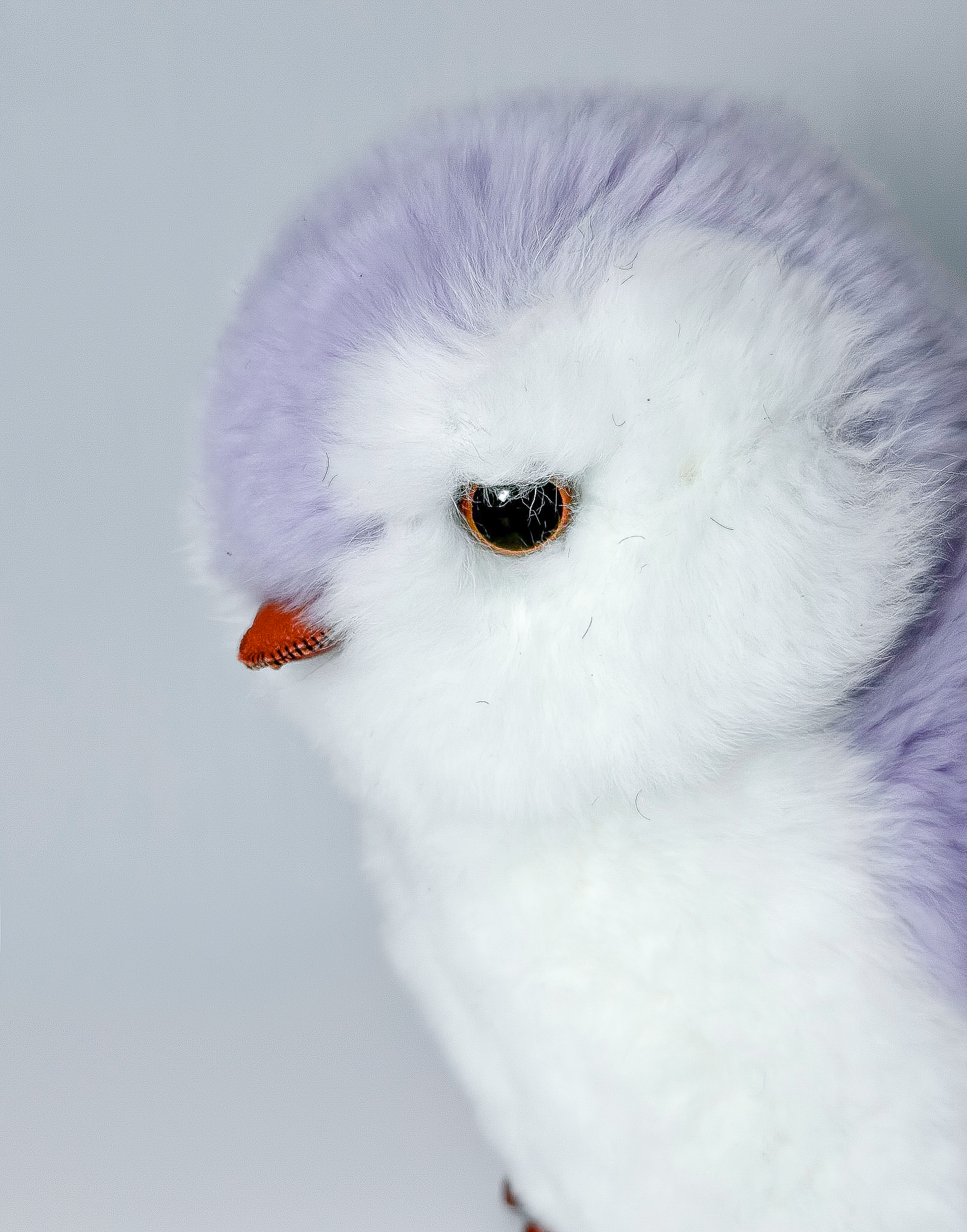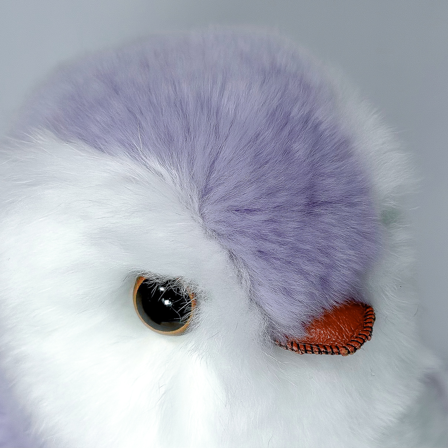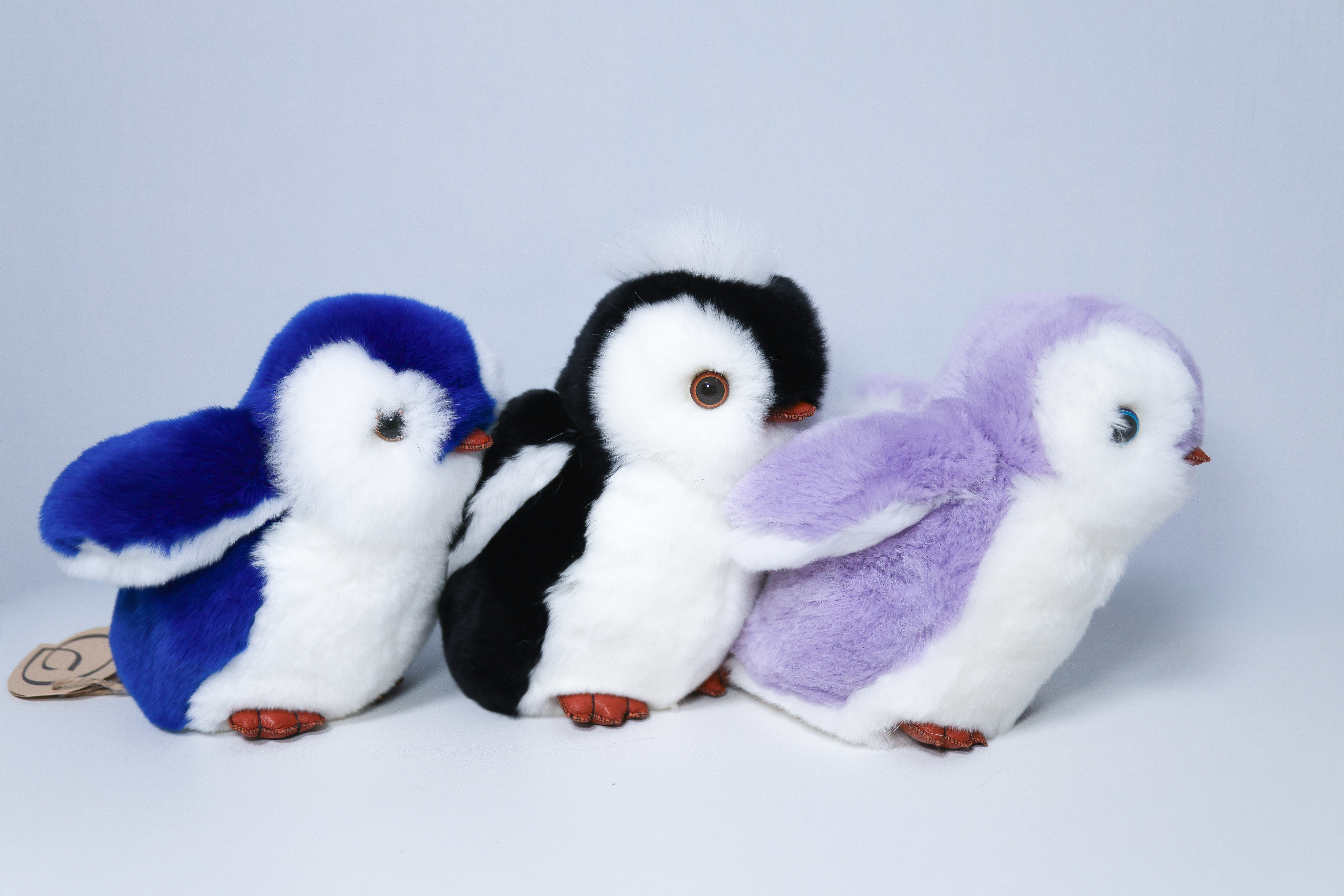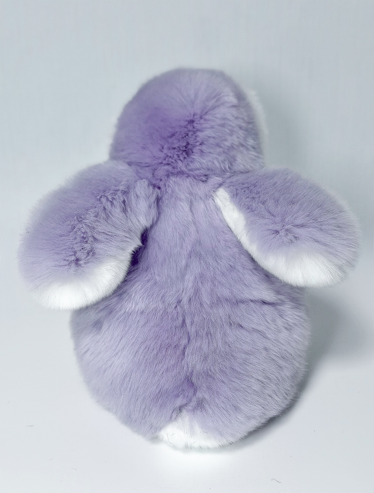 Пингвин Лоло сделан из натурального меха рекс (кролик) нежного сиреневого цвета с белыми вставками. Клюв и лапки выполнены из кожи.