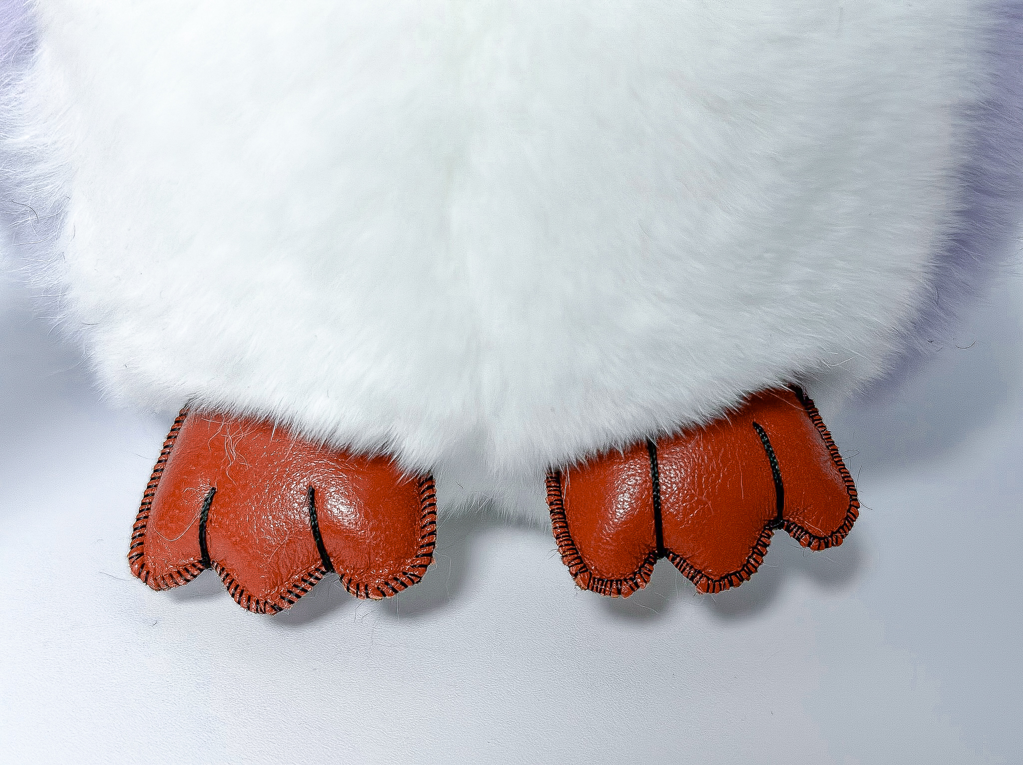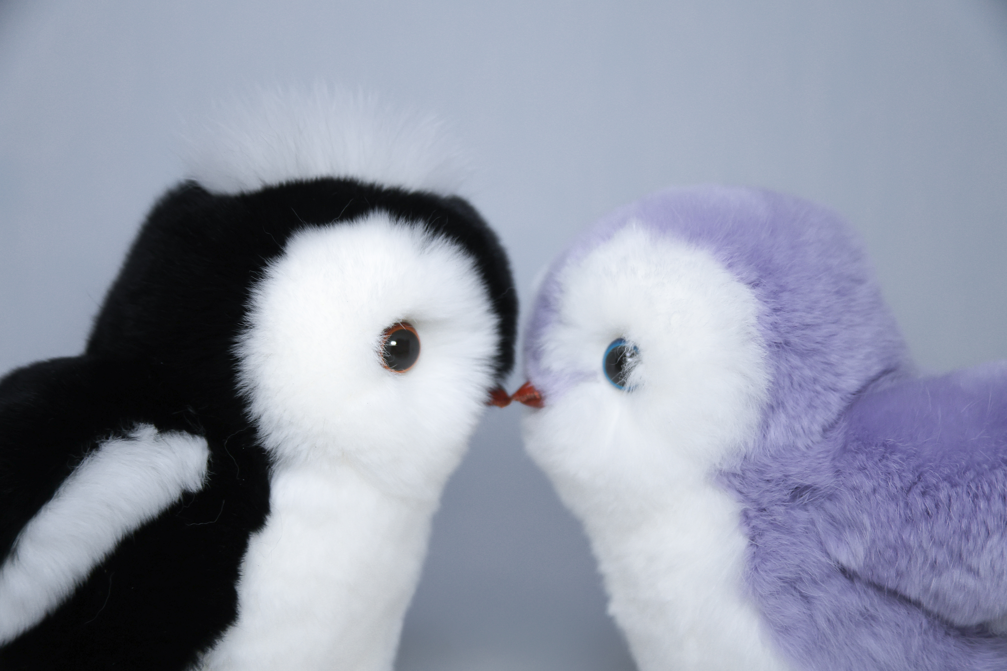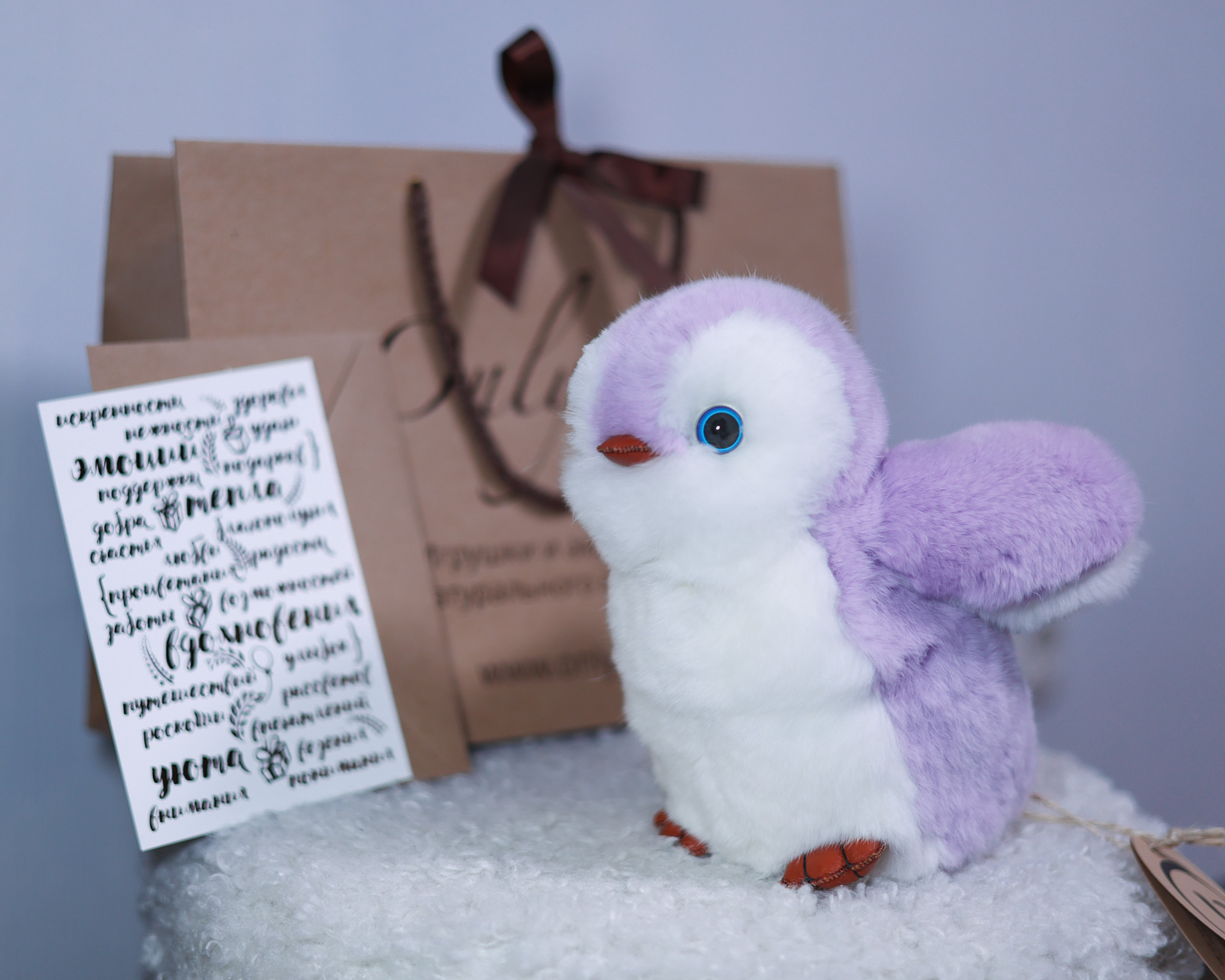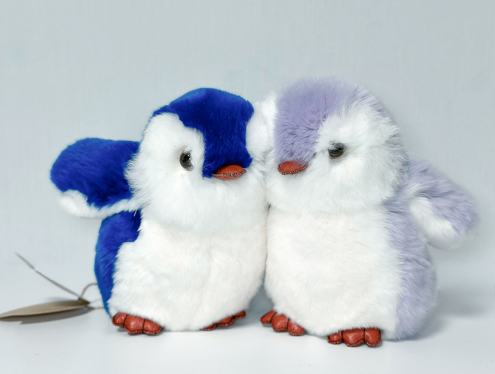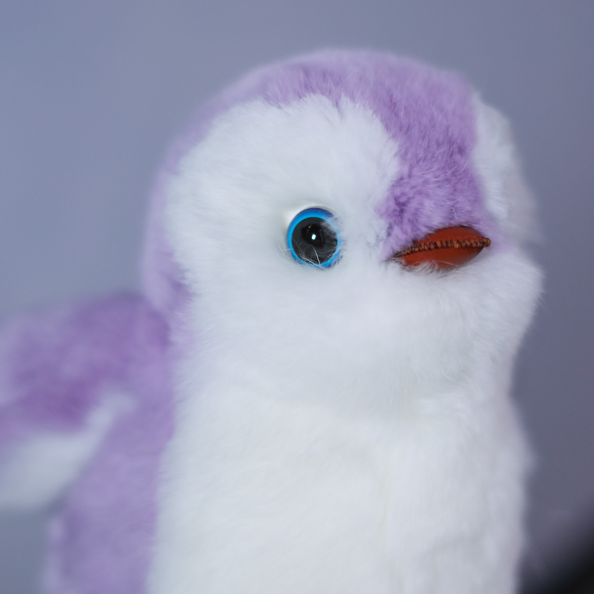 Пингвин Лоло сделан из натурального меха рекс (кролик) нежного сиреневого цвета с белыми вставками. Клюв и лапки выполнены из кожи.