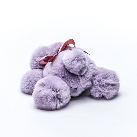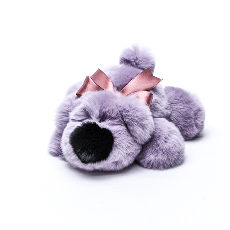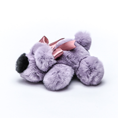 Собачка Шанель маленькая сделана из натурального меха кролик рекс нежного сиреневого цвета. Игрушка украшена декоративным атласным бантом, который при желании можно снять.