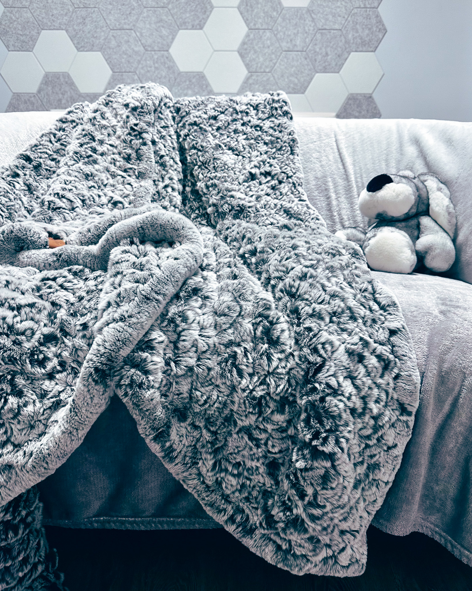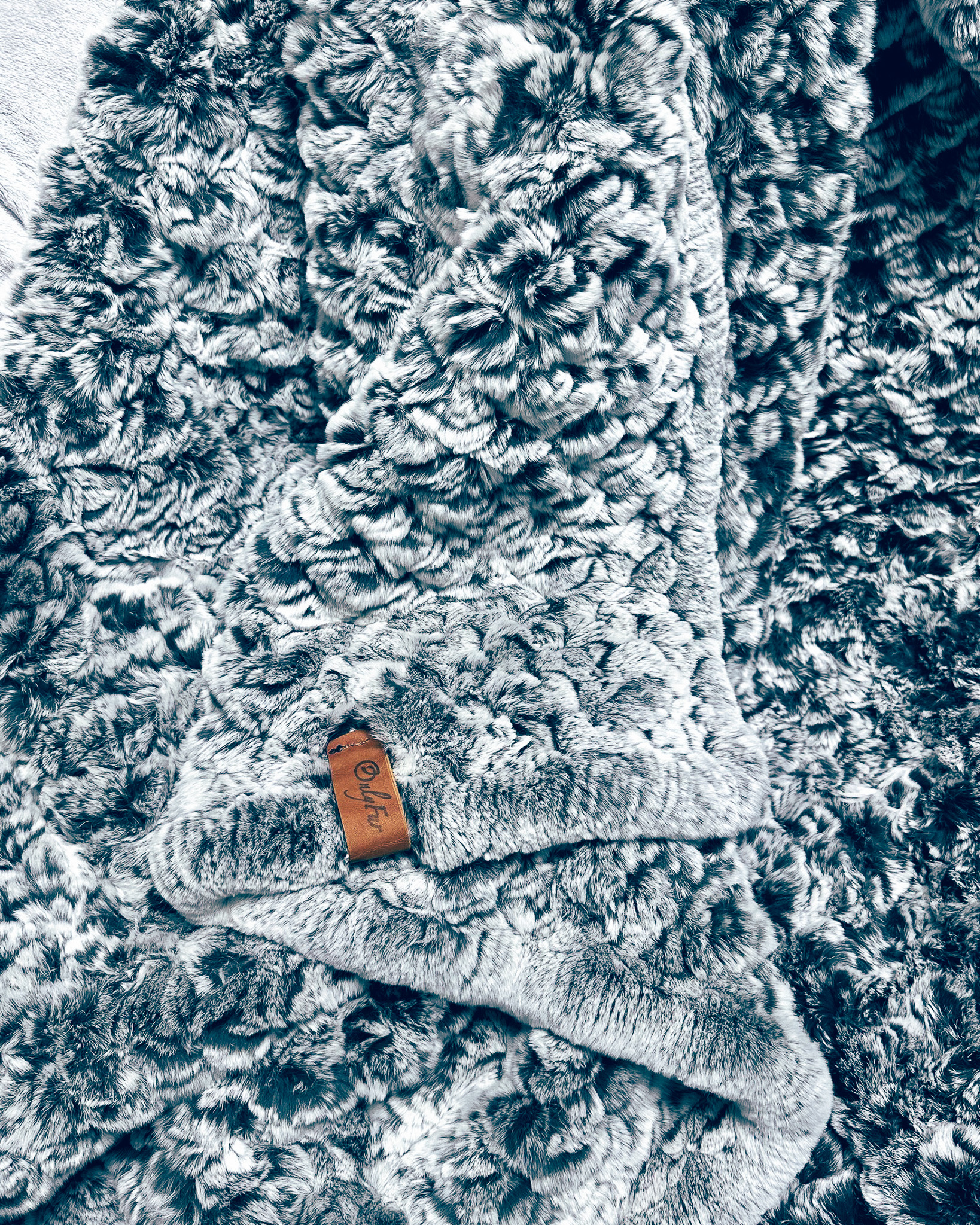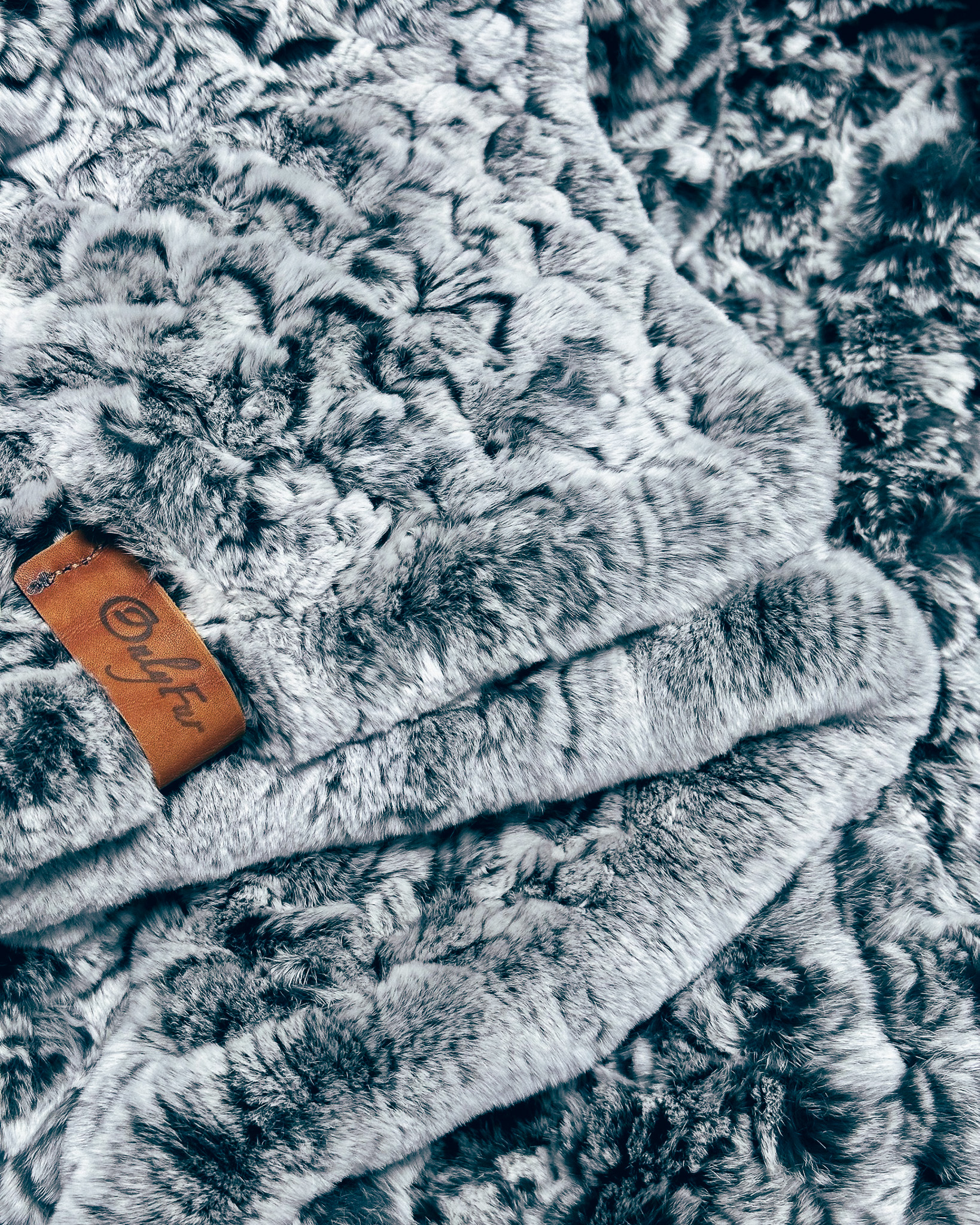 Несомненное преимущество "вязаного" пледа заключается в его пышности и воздушности - плед получается существенно легче по весу в сравнении с пледом из цельных шкур и не требует подклада, что также не утяжеляет плед.